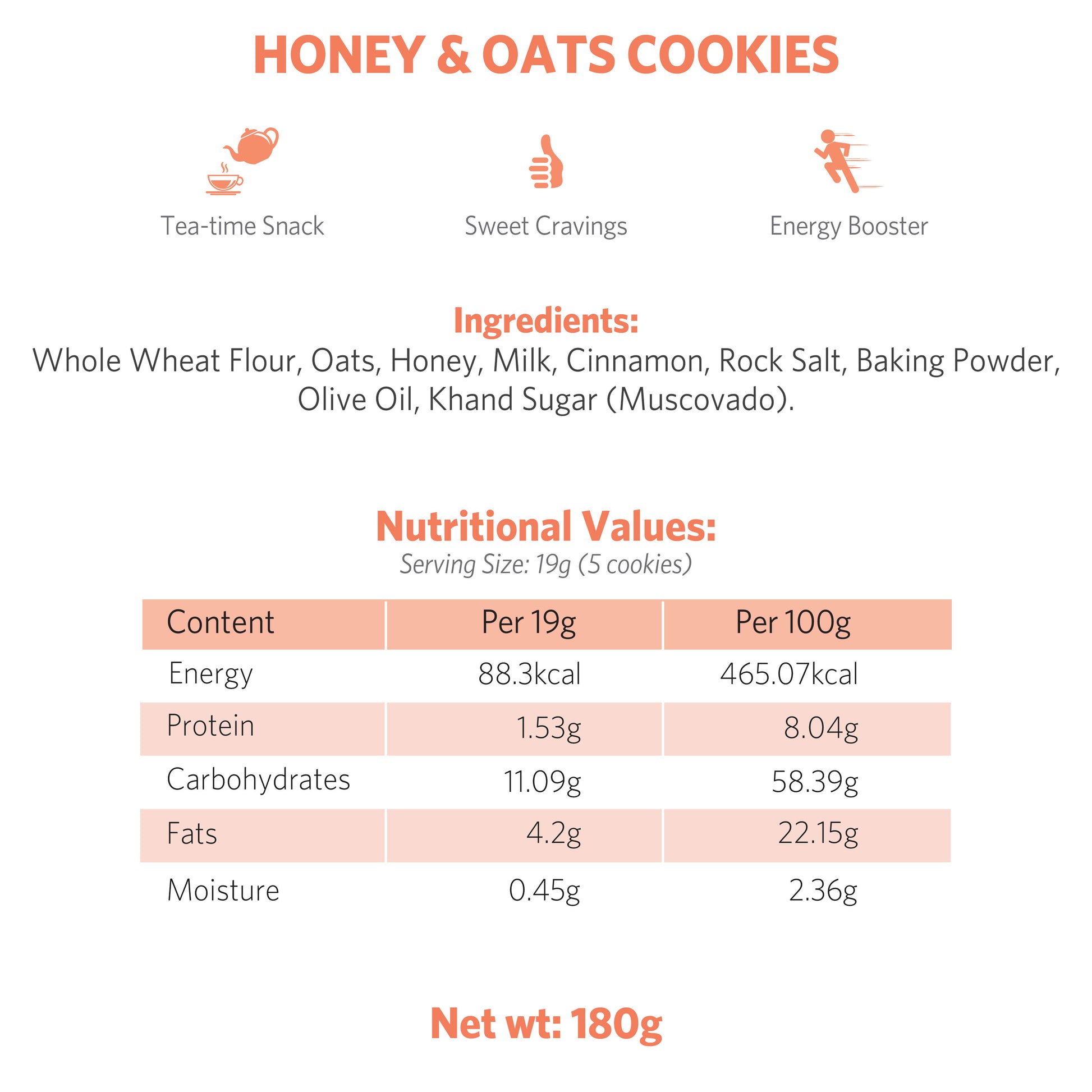 Nutritional Values - 19g (5 cookies)